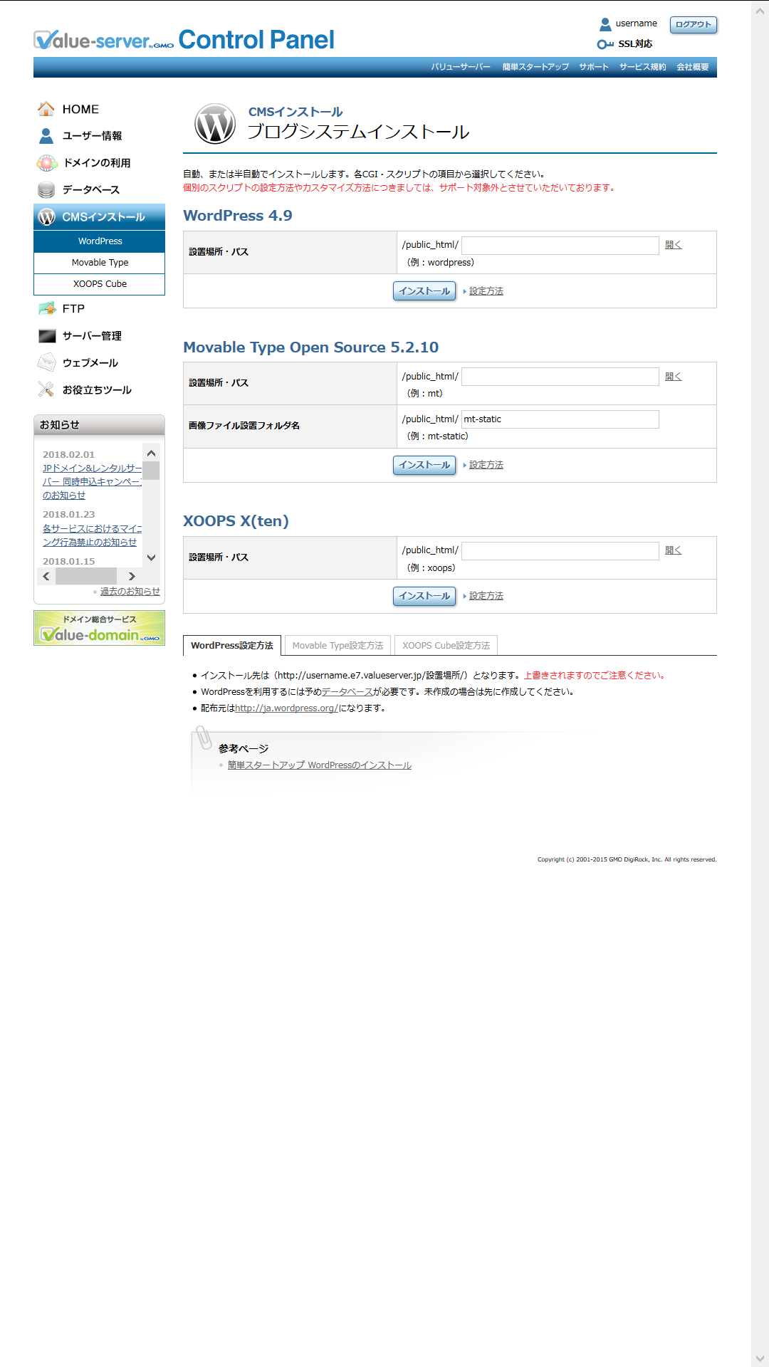 ● CMSインストール