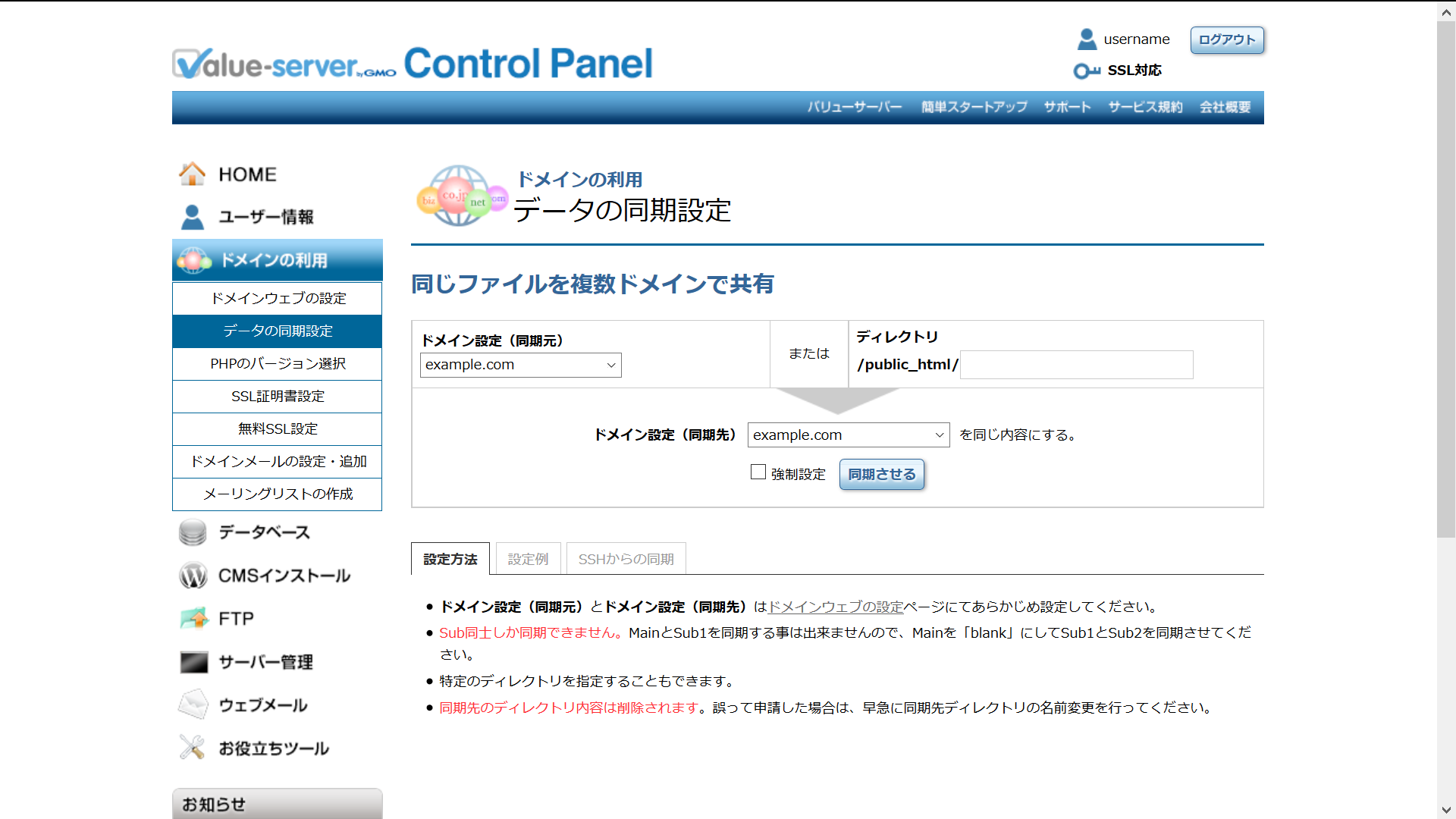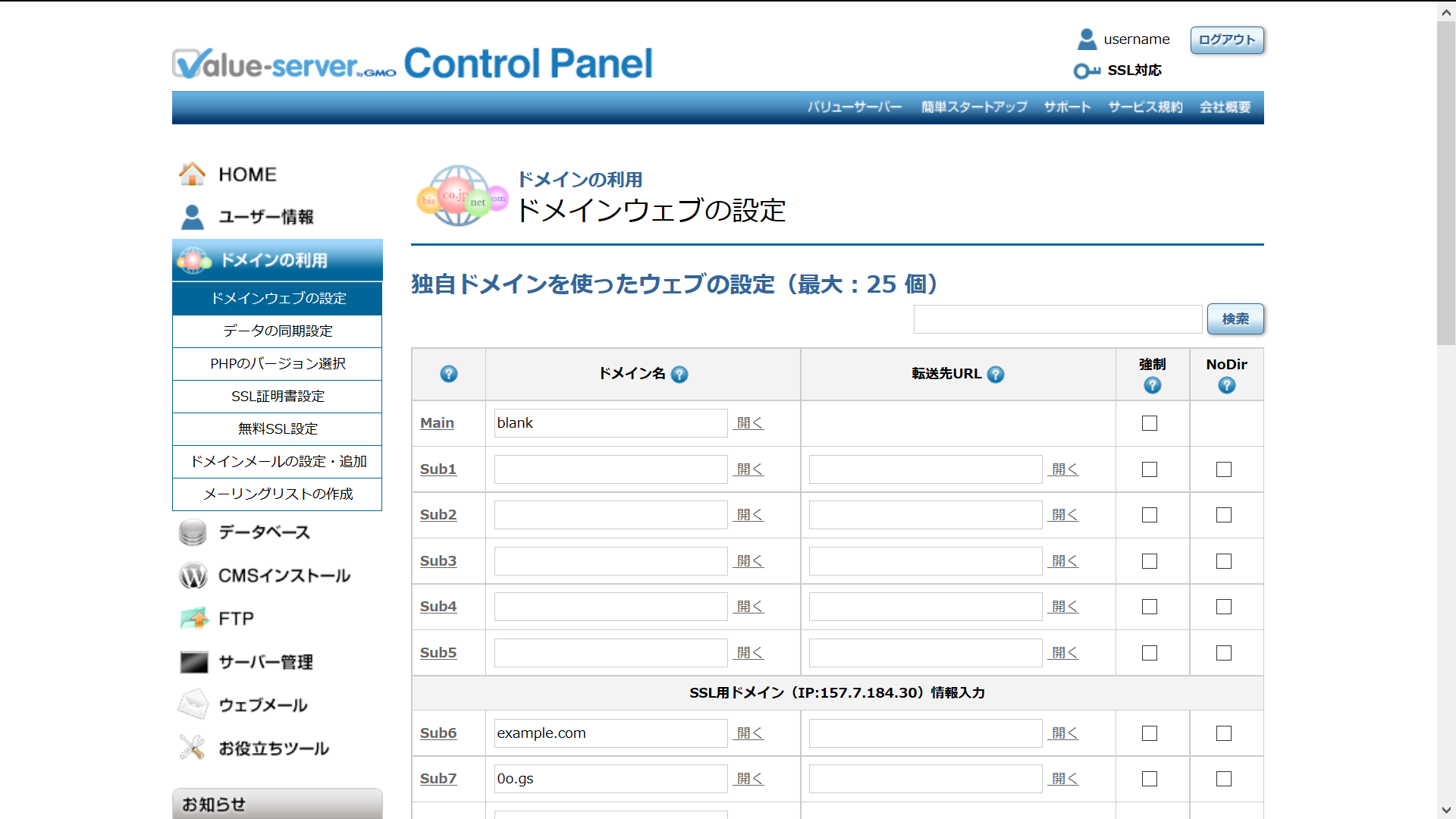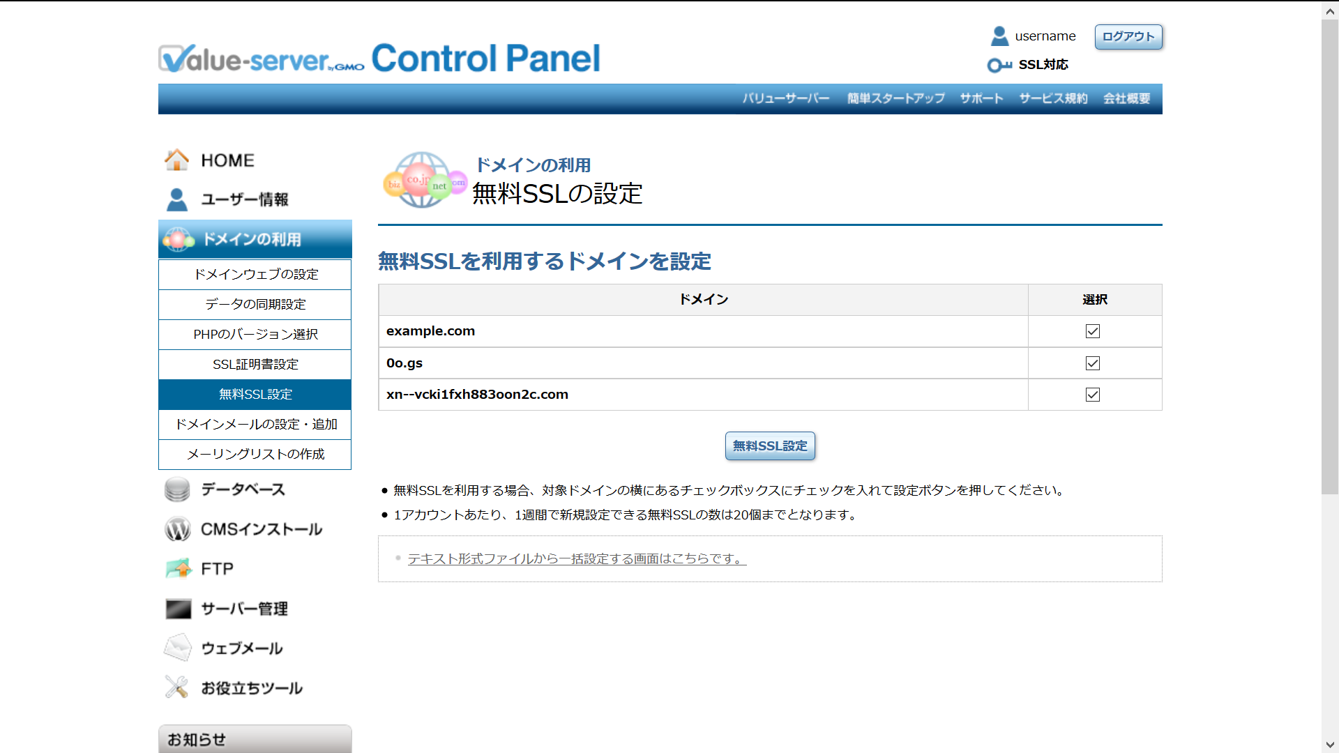 ドメインウェブの設定