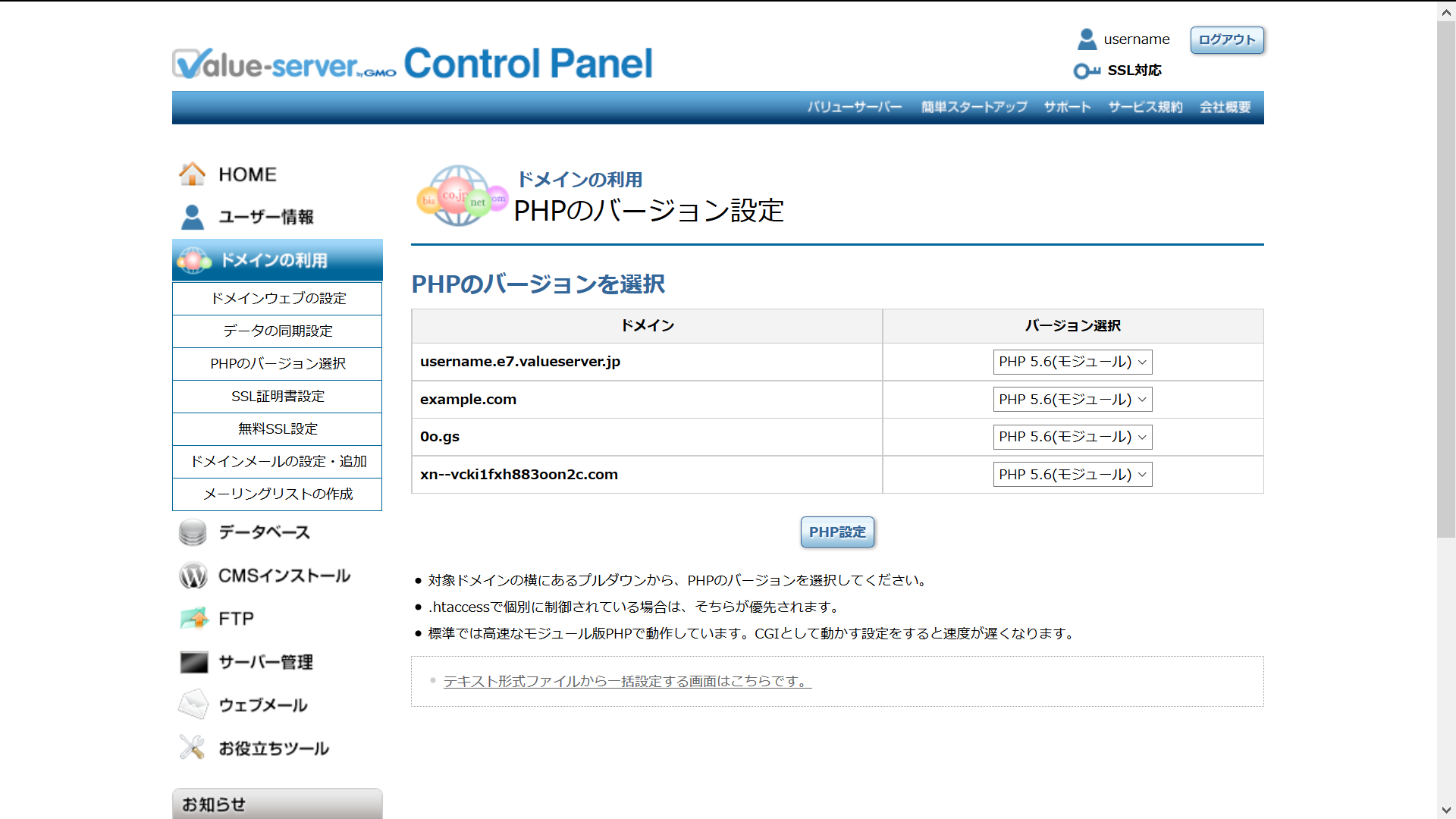 PHPのバージョン選択