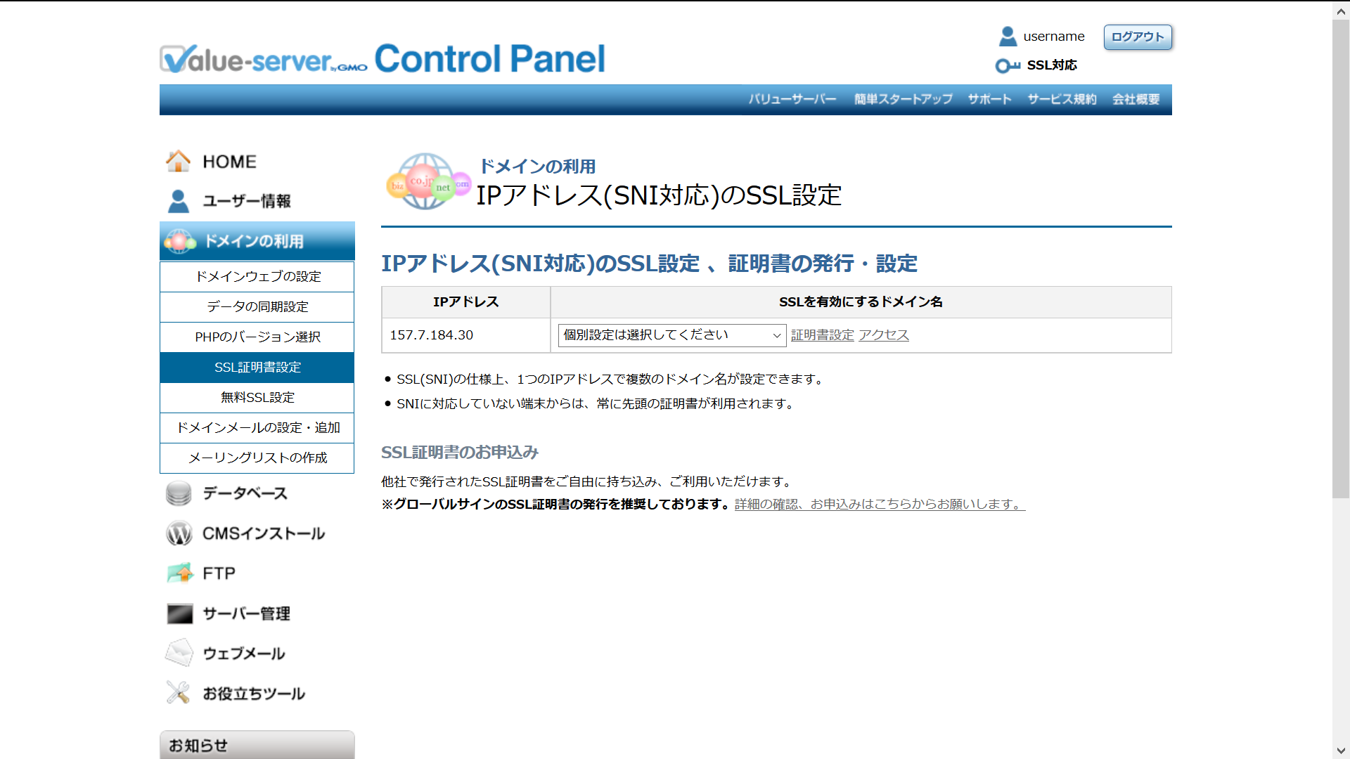IPアドレス(SNI対応)のSSL設定