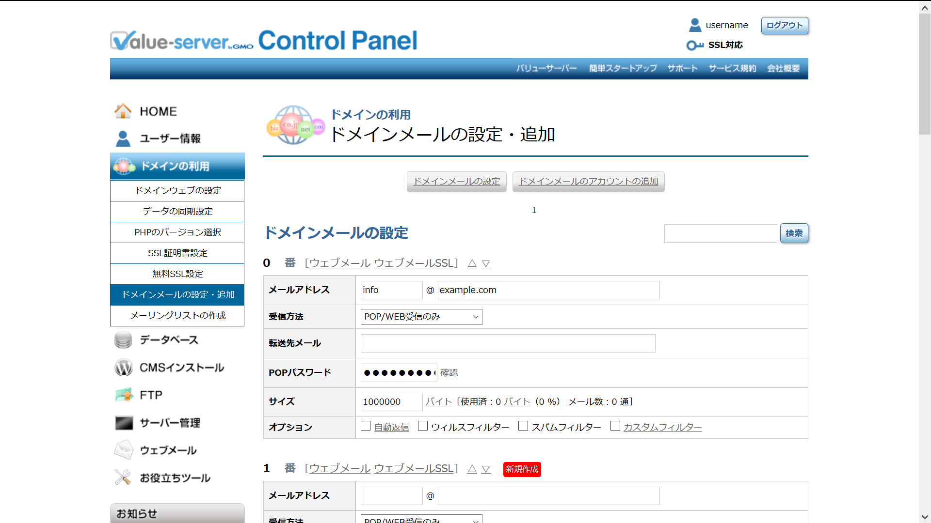 ドメインメールの設定・追加