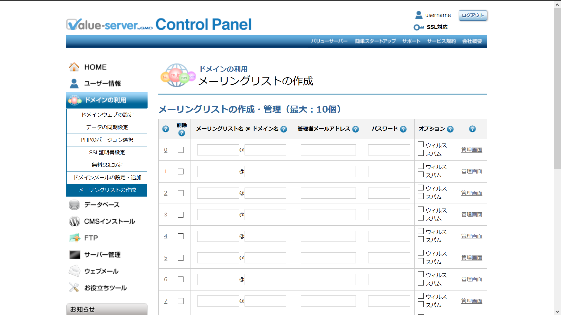 ● ドメインの利用