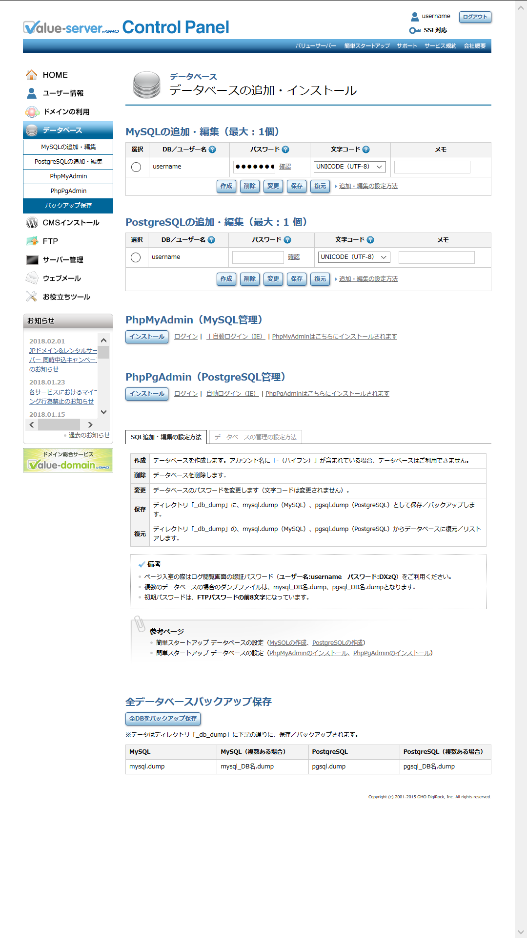 データベースの追加・インストール