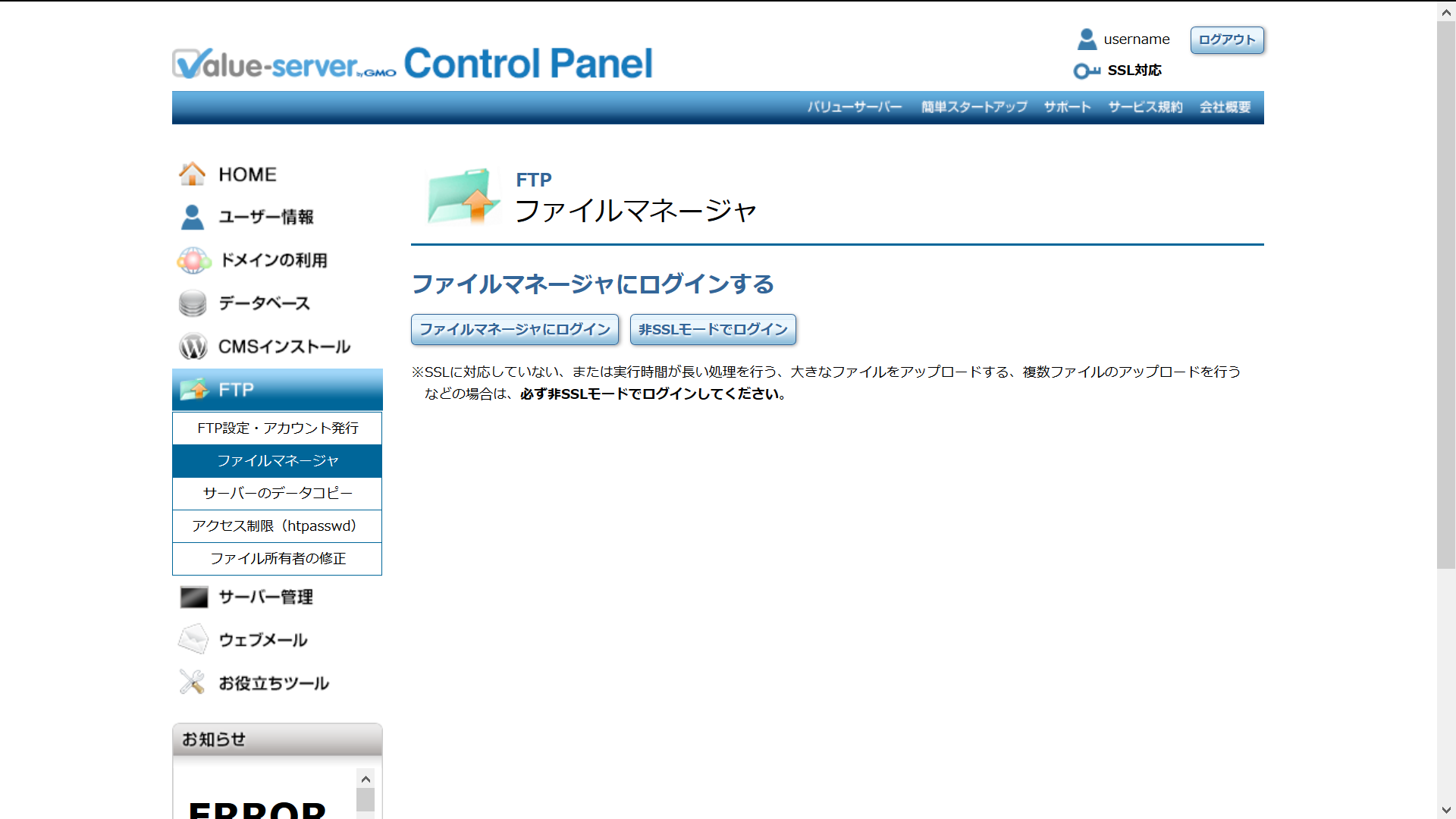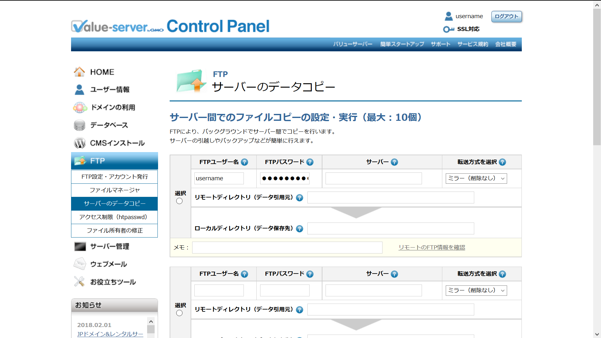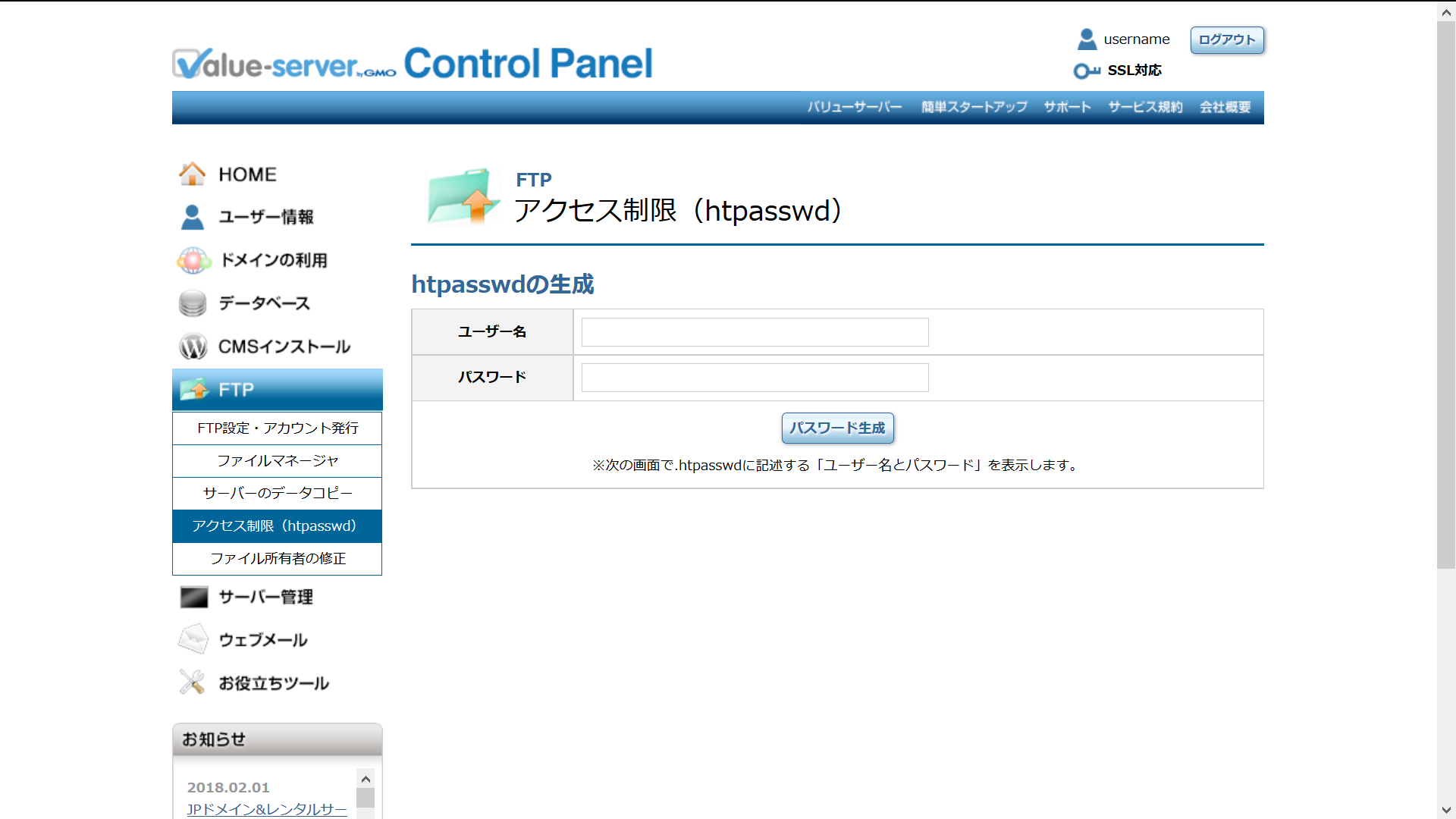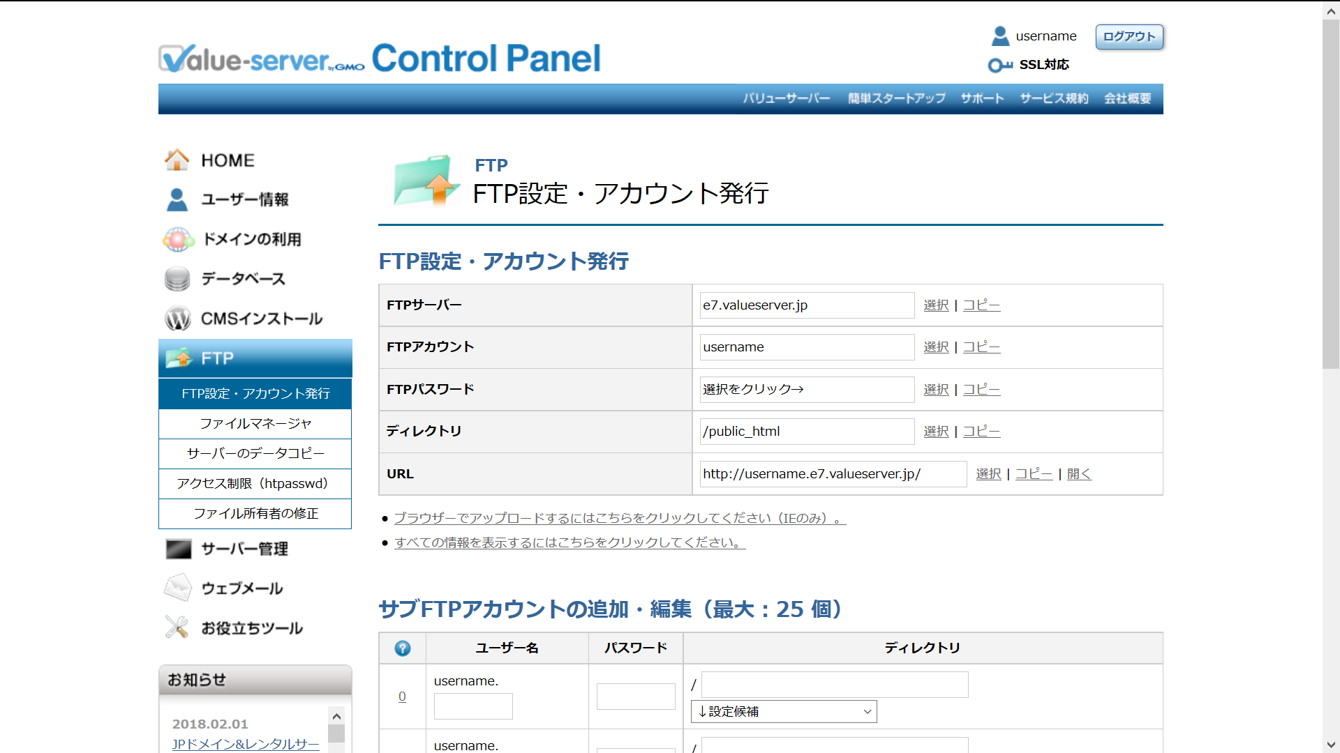 FTP設定・アカウント発行
