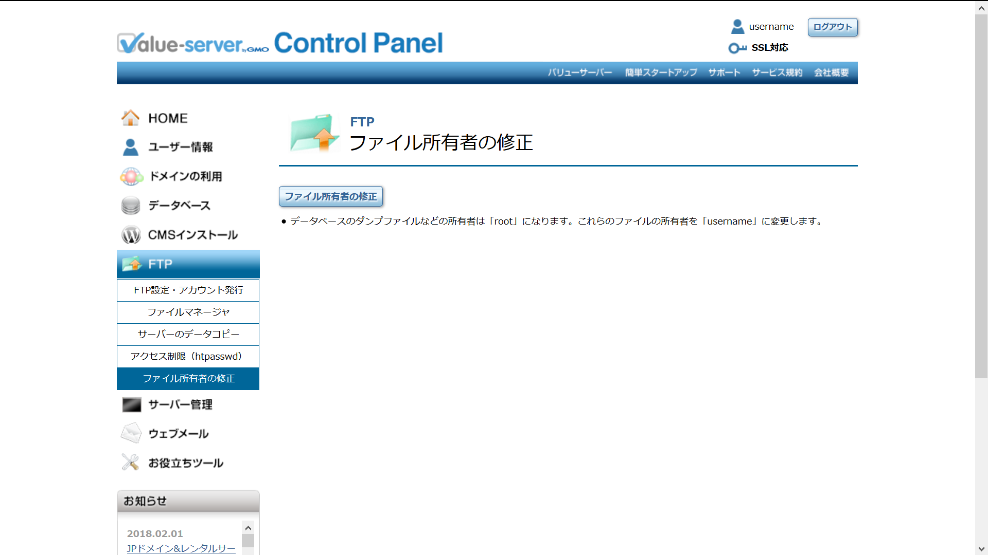 ファイル所有者の修正