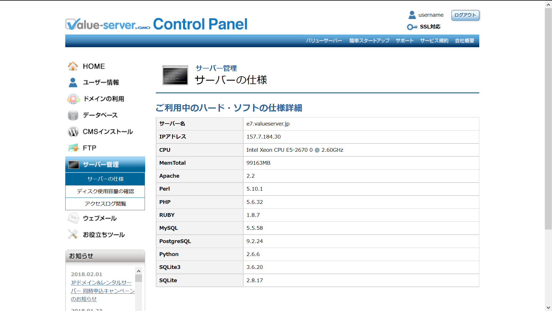 サーバーの仕様