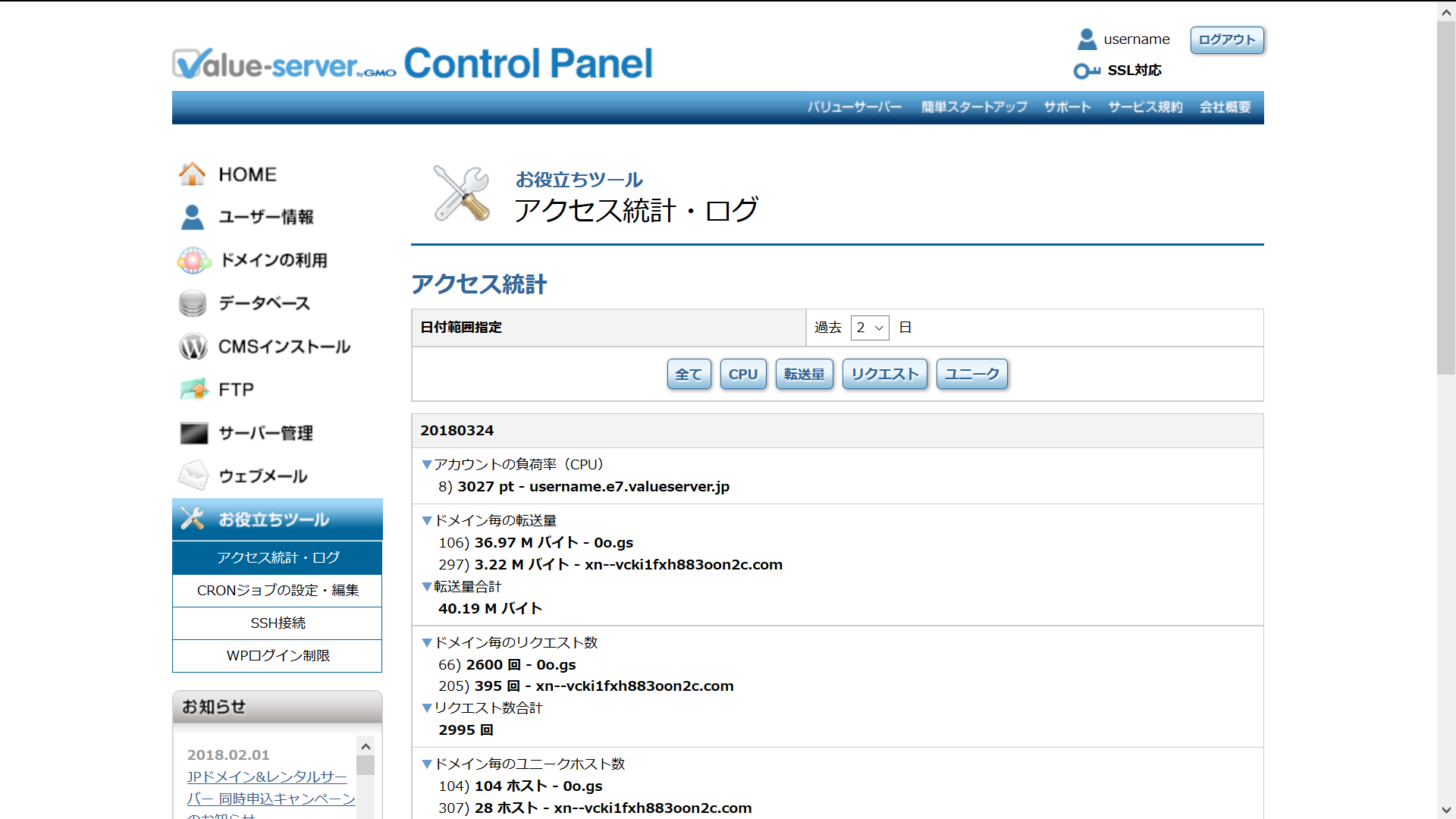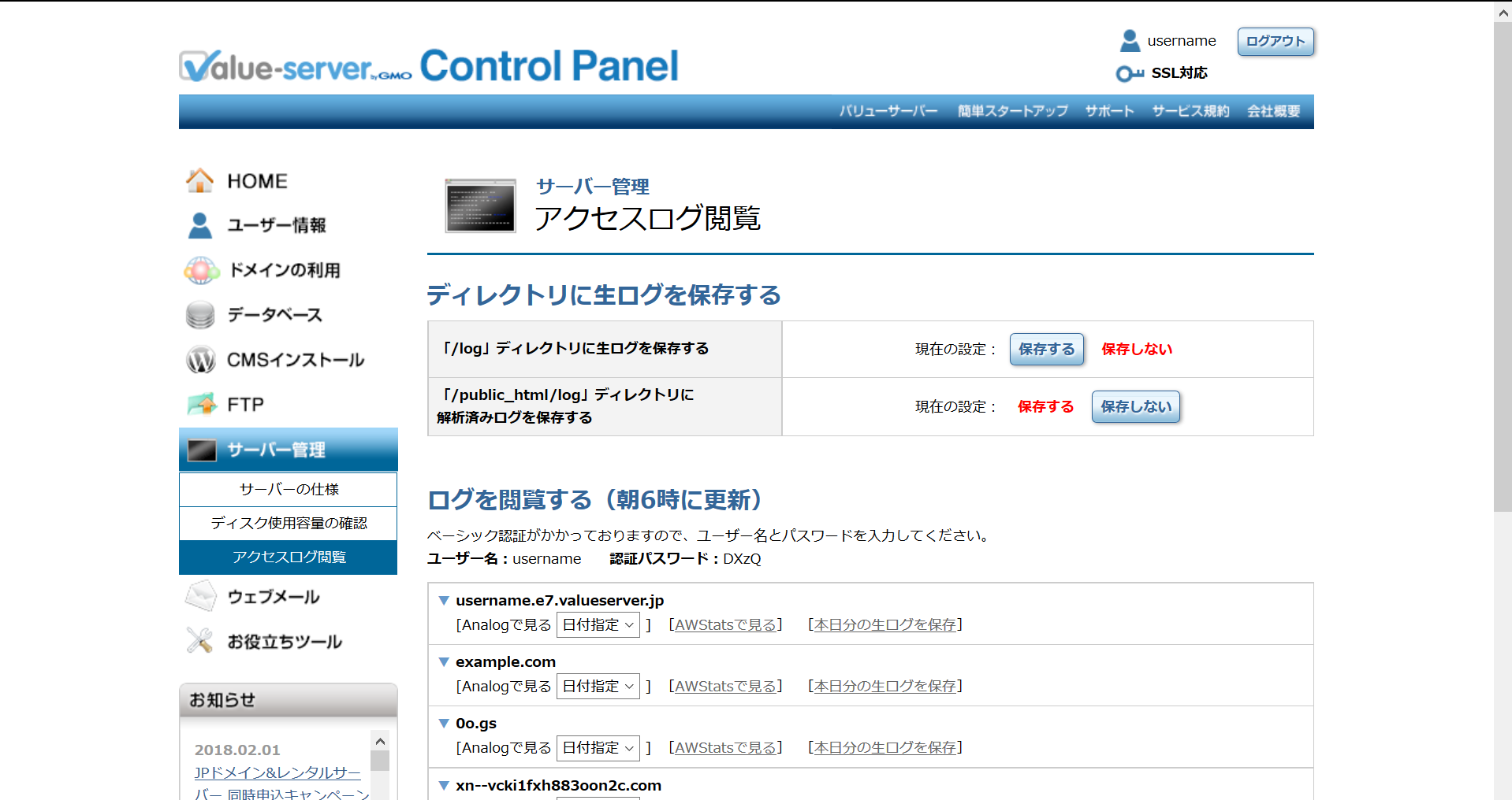 アクセスログ閲覧