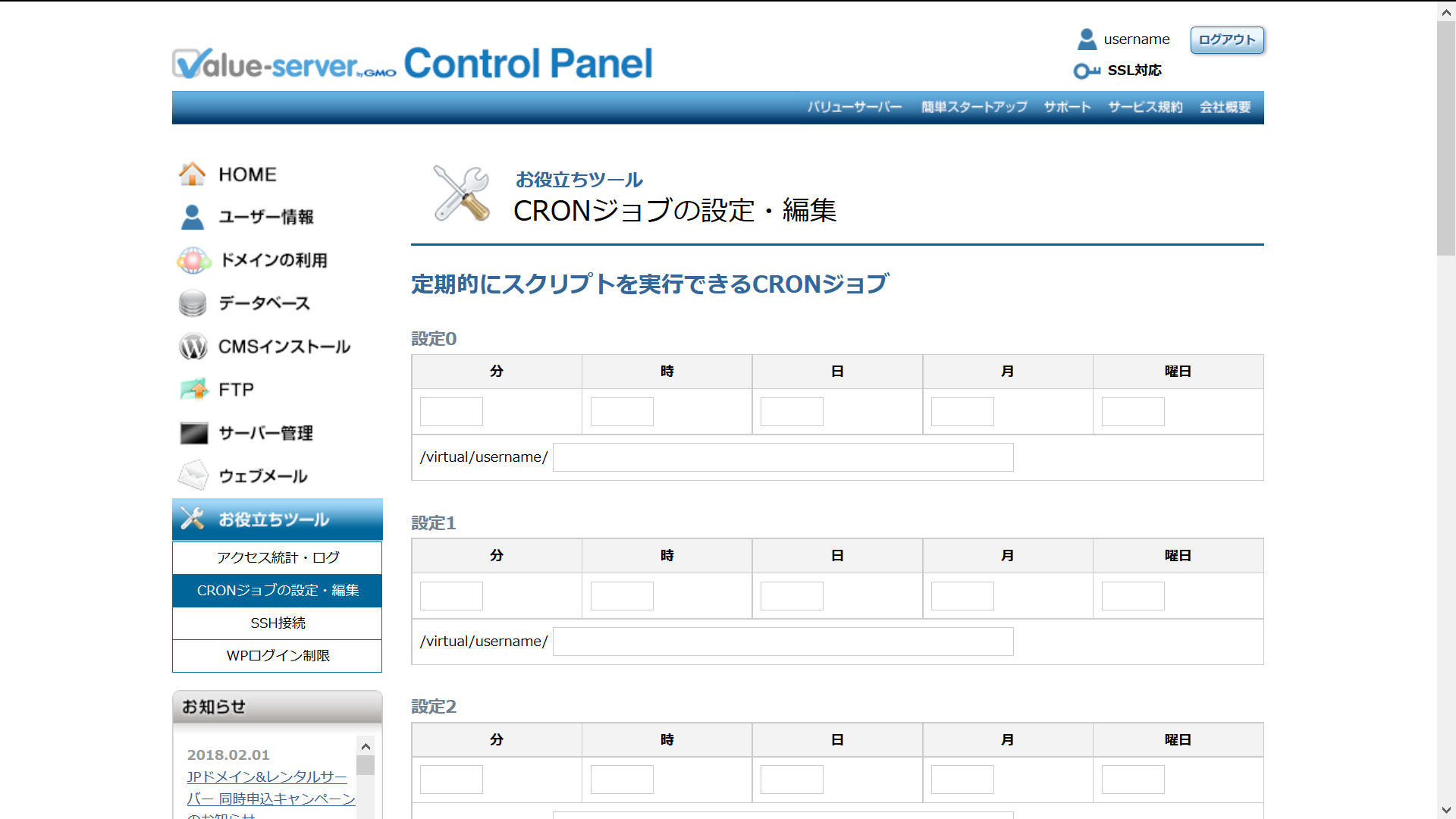 CRONジョブの設定・編集
