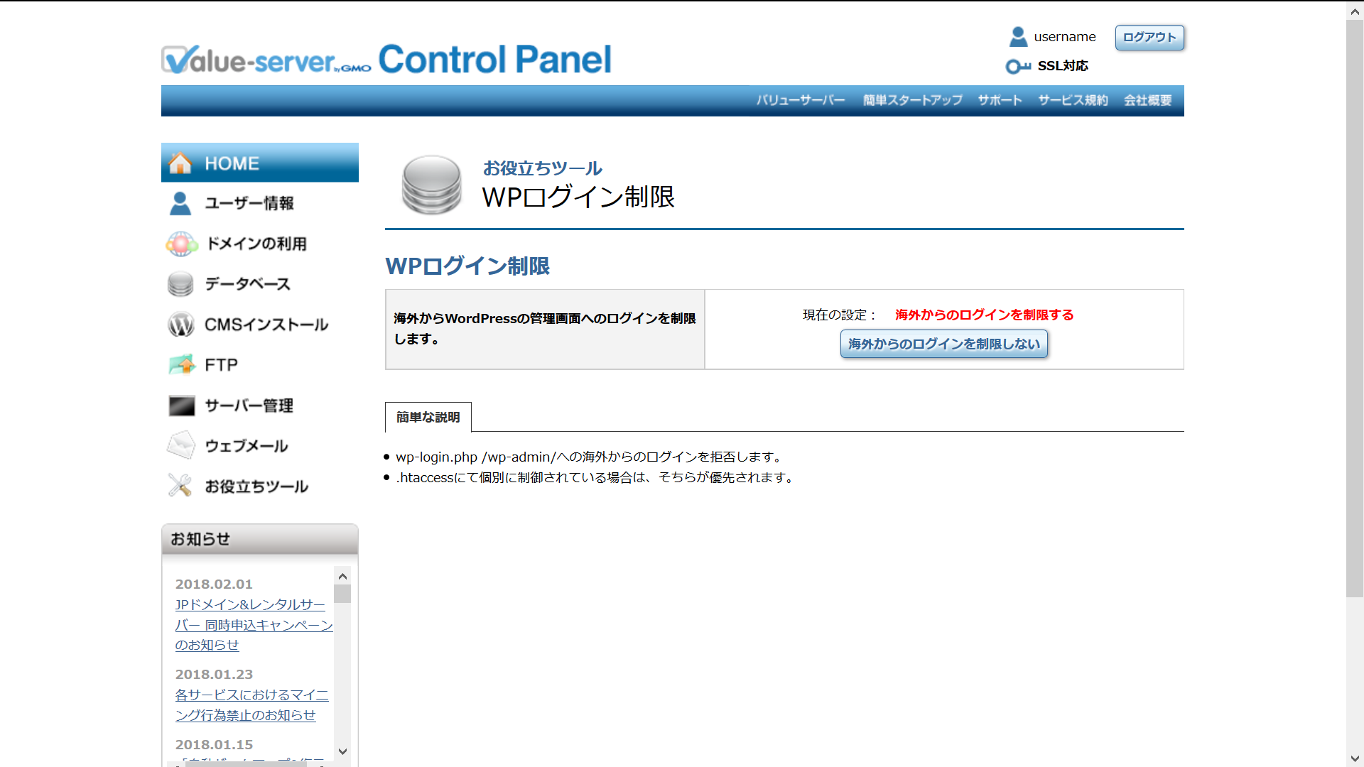 WPログイン制限