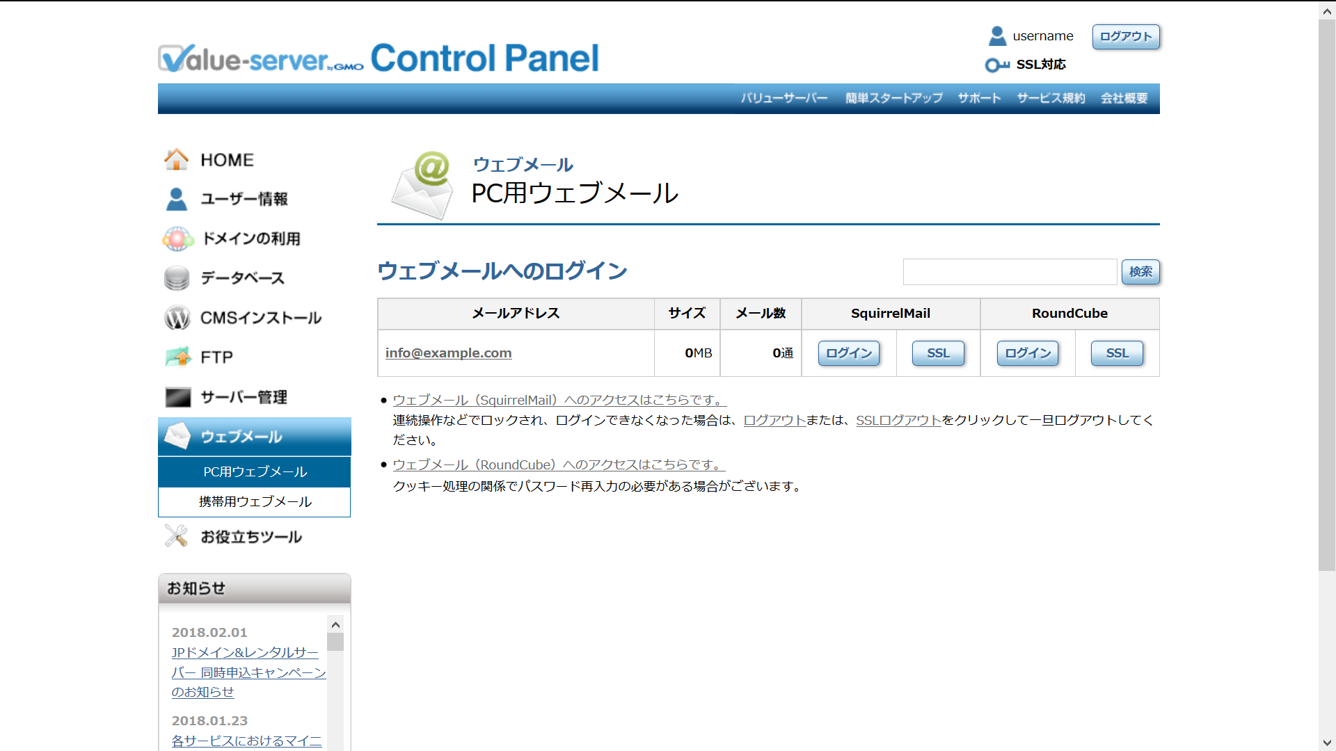 PC用ウェブメール