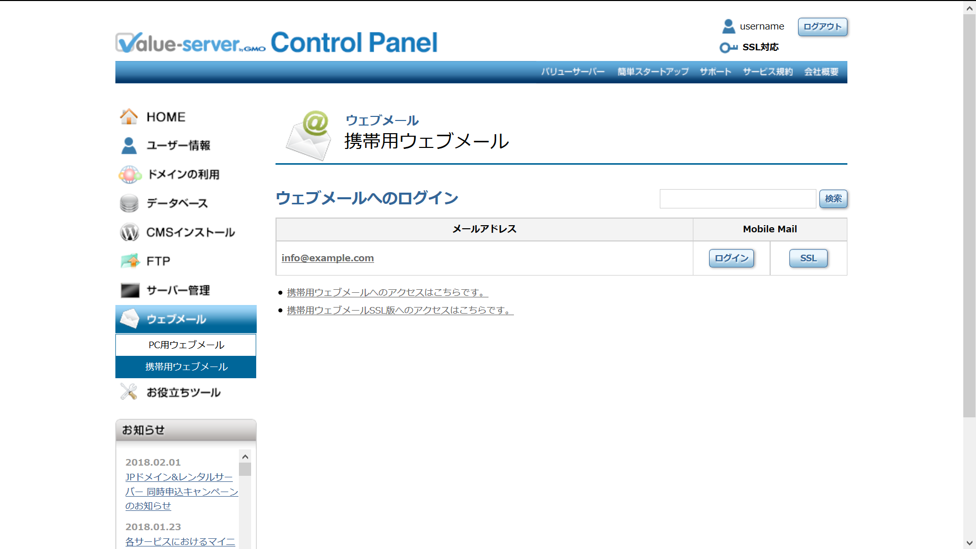 携帯用ウェブメール